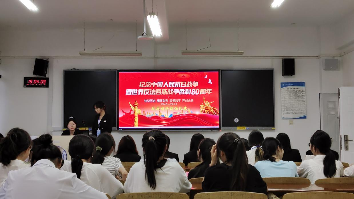 在文化创作类活动中,“铭记抗战历史,传承爱国精神”硬笔字比赛吸引372名学生参与,选手们以《论持久战》节选、抗战诗词为内容,用笔墨诠释革命先辈的战略智慧与家国情怀;“历史的回响 和平的未来”手抄报与征文征集活动则通过视觉艺术与文字表达,展现抗战岁月的震撼场景,抒发对先烈的缅怀与对和平的珍视。在沉浸式体验活动中,师生共同观看电影《八佰》,重温淞沪会战“八百壮士”死守四行仓库的热血史实;“青春诵经典 薪火传精神”主题朗诵比赛上,选手们用声情并茂的演绎再现烽火岁月中的不屈信念。系列活动覆盖全院学生,形成“人人参与、人人感悟”的教育氛围。